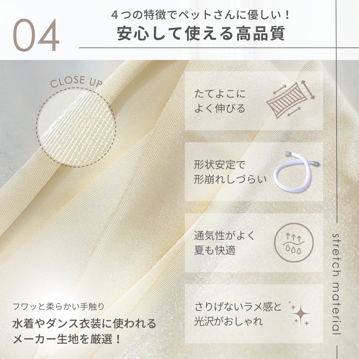 タテヨコによく伸びるので、ペットのどんな動きにも