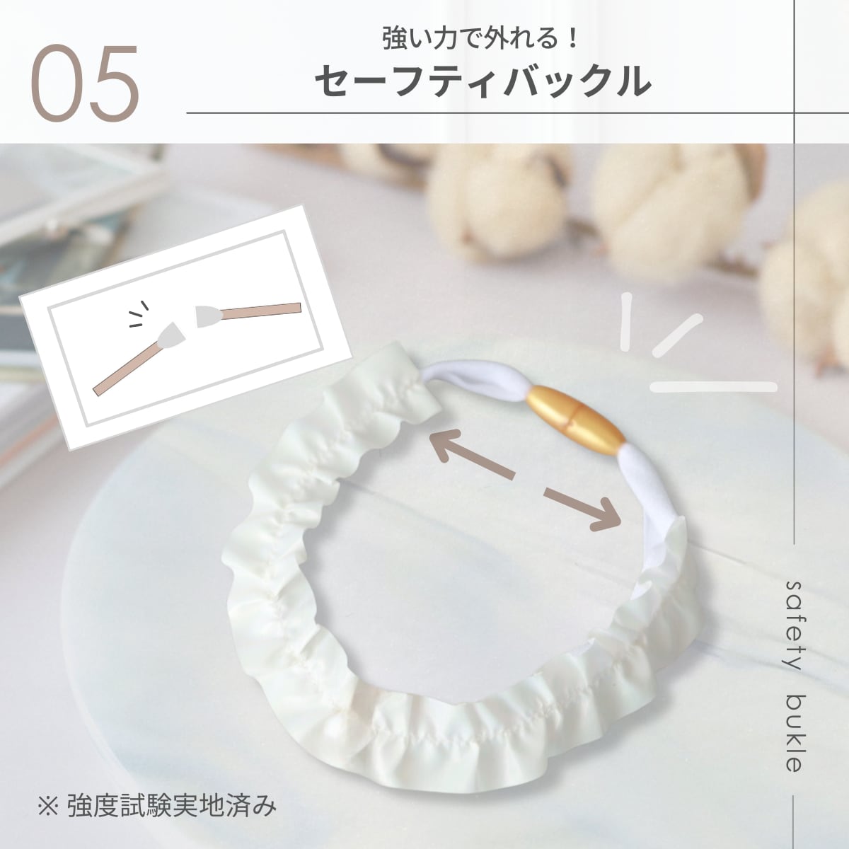 セーフティバックルは100%の安全を保証するものではなく、商品による万が一の事故は責任を負うことができません。