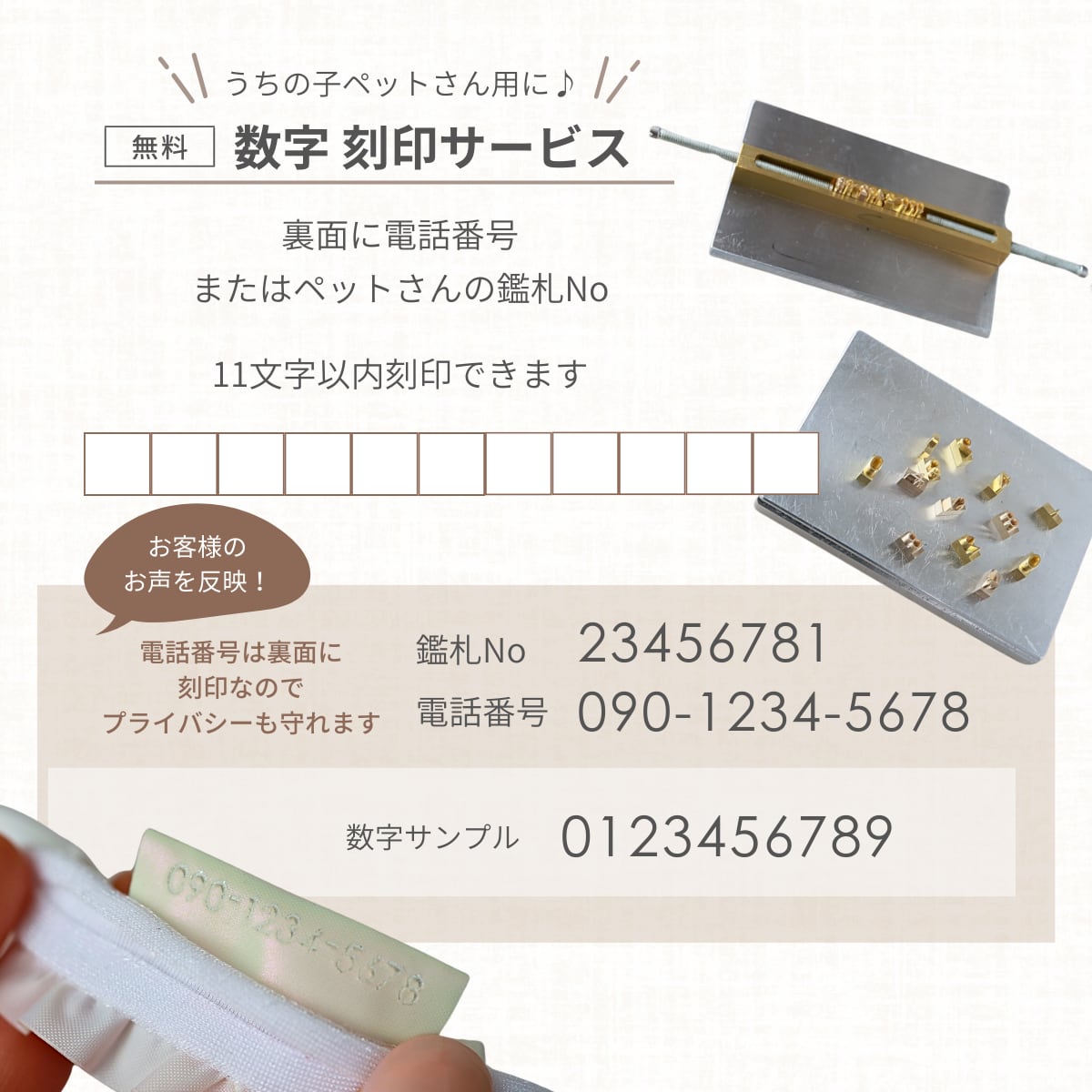 裏:090-1234-5678 (または鑑札番号)