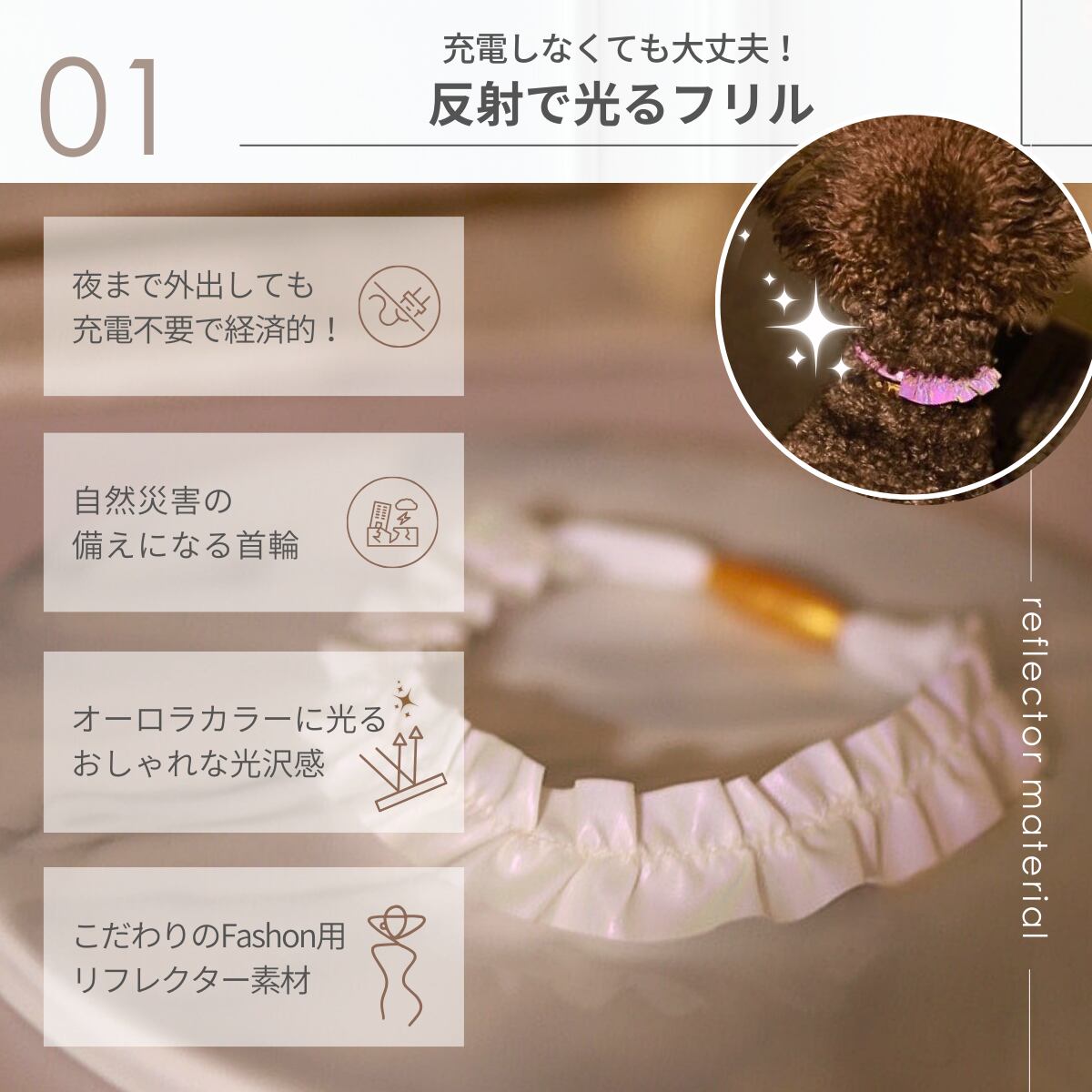 反射で光る首輪は充電不要で